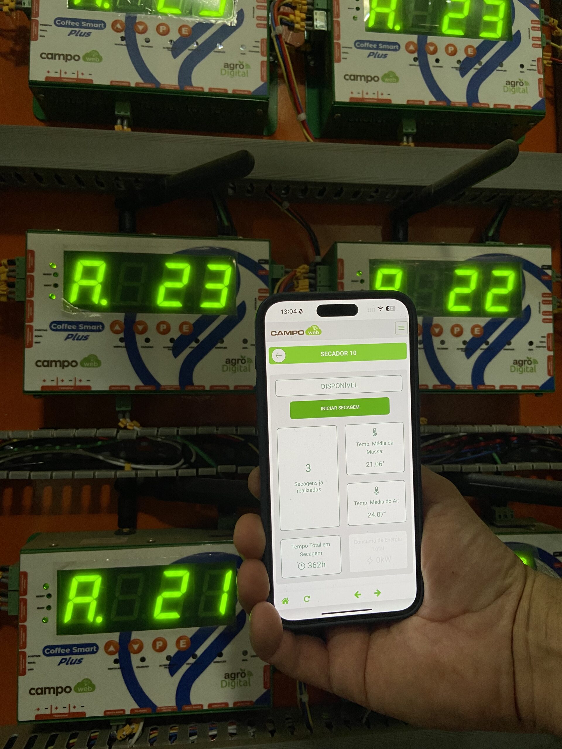 O Coffee Smart da Campotech é um controlador digital para secagem de café desenvolvido para entregar mais inteligência, precisão e automação ao pós-colheita.